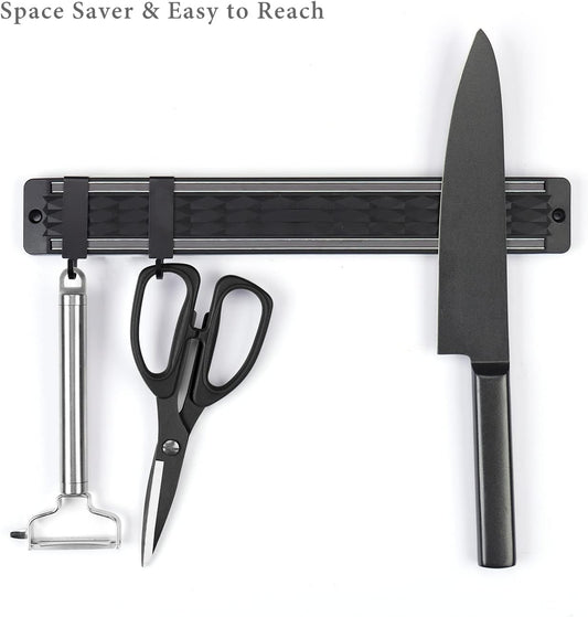 KITCHENDAO Diamond Magnetic Knife Holder for Wall with 2 Hooks 13 inch, 2 Pack