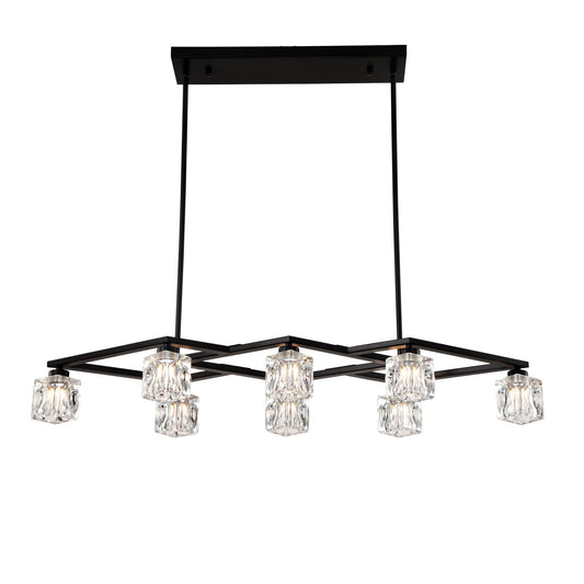 Matte Black Crystal Chandelier for Dining Room, 8-Light Kitchen Chandelier Light Fixture Modern Metal Industrial Chandeliers for Farmhouse Entryway Living Room (8*G9 Bulbs Included)