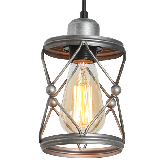 Industrial Pendant Lighting for Kitchen Island, Rustic Mini Cage Pendant Light, Farmhouse Pendant Lamp with Silver Grey Adjustable for Dining Room, Hallway, Entryway, Bedroom
