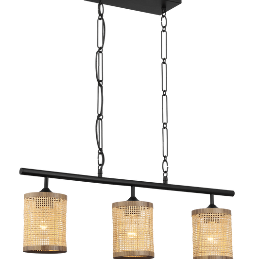 Elysian Three Lights Island With Natural Rattan Shade Farmhouse Chain Ceiling Lamp