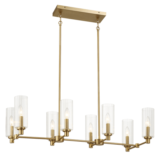 Willow Eight Lights Island With Clear Ribbed Glass Pendant Lamp - Satin Brass