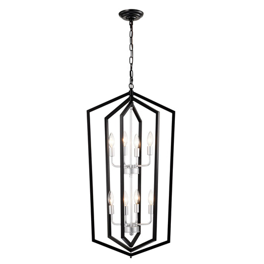 18" Modern 8-Light Black Geometric Pendant Chandelier, Industrial Metal Frame, Adjustable Hanging Light for Living Room, Dining Room, Kitchen (No Bulbs)