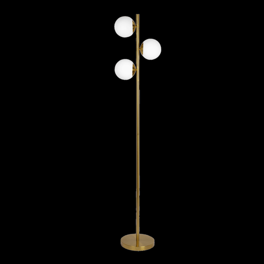 Brilliance Modern Gold Brush Floor Lamp, Opal Glass Shades and Round Metal Base