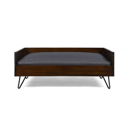 Elegant rectangular pet bed for small and medium-sized dogs, durable elevated dog sofa bed, comfortable dog sofa, modern and fashionable linen fabric dog sofa-Dark Brown