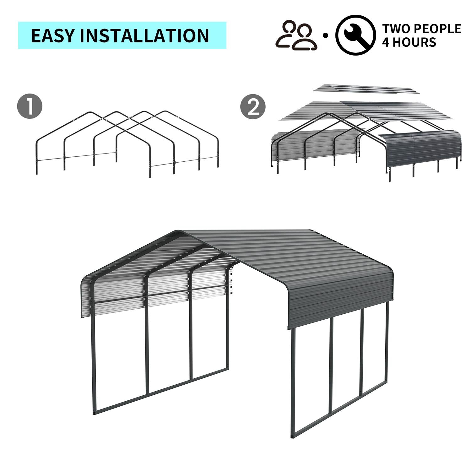 Hassle-Free Assembly & Installation: Assembly is made easy with a detailed instruction manual. Each component is clearly labeled and numbered, allowing you to set up your metal carport quickly and effortlessly. Enjoy a stress-free installation and start using your new carport in no time!
