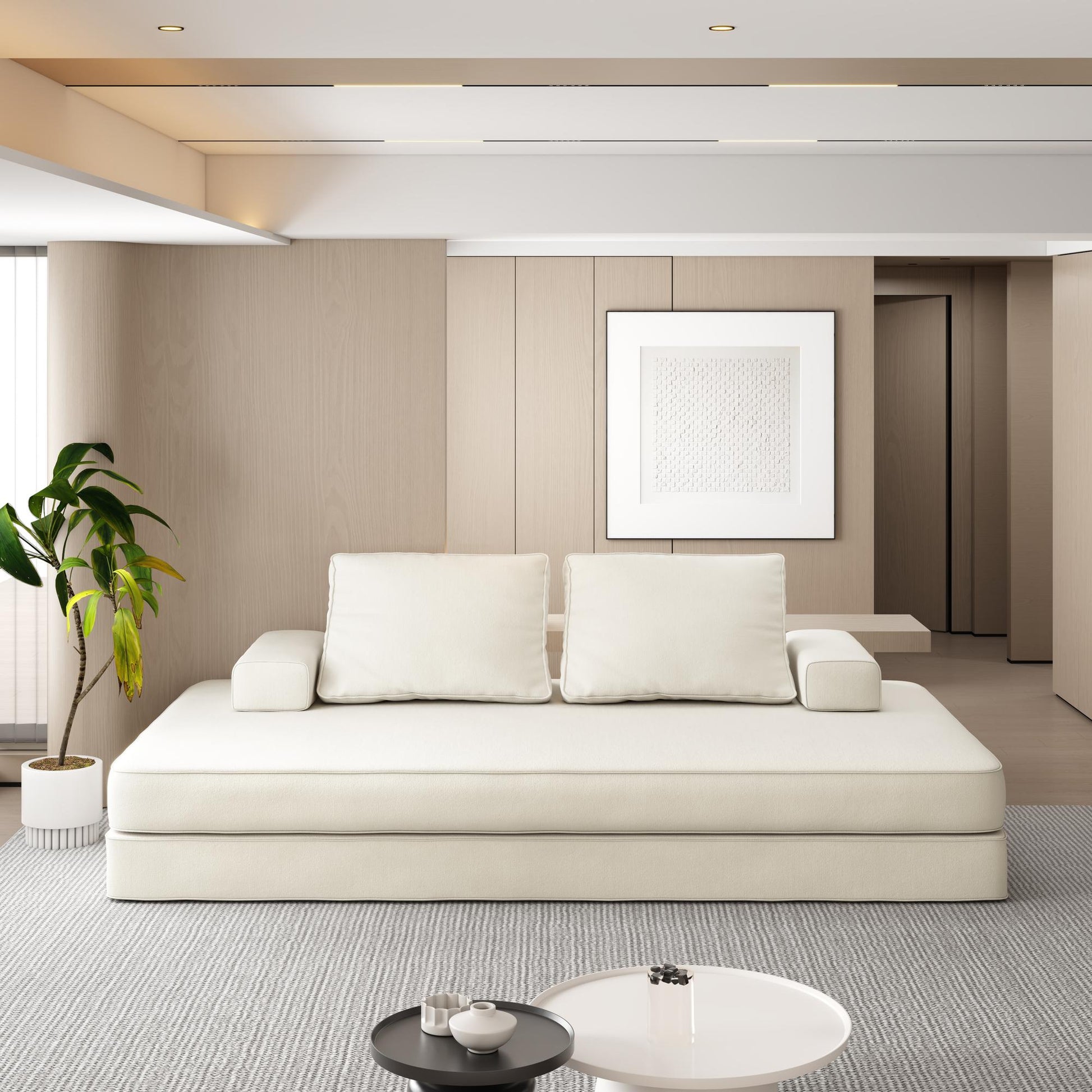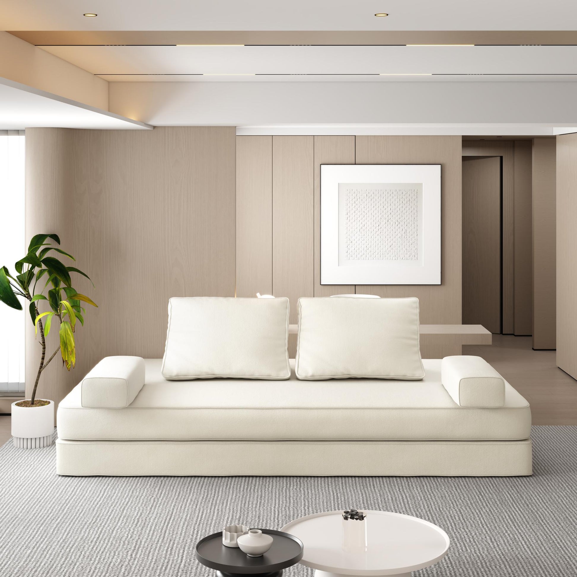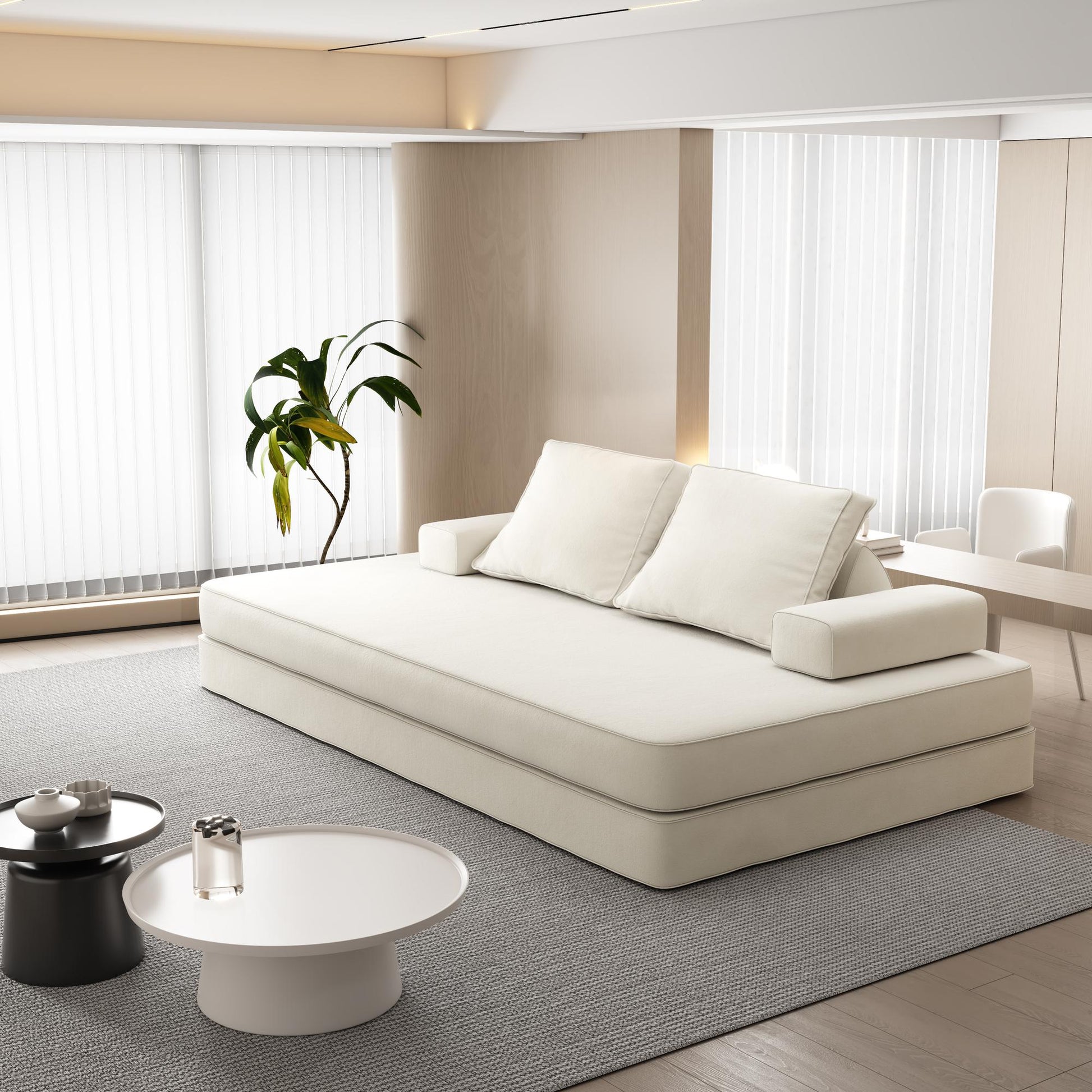 【Convertible Floor Sofa Bed】Releasing the complete sleeping area and cleverly integrating multiple functions greatly improves space utilization and convenience in daily life. During the day, it is a comfortable sofa that does not take up additional bedroom space; Unfold into a sleeper sofa bed at night, there is no need to prepare a dedicated room for guests' temporary accommodation.