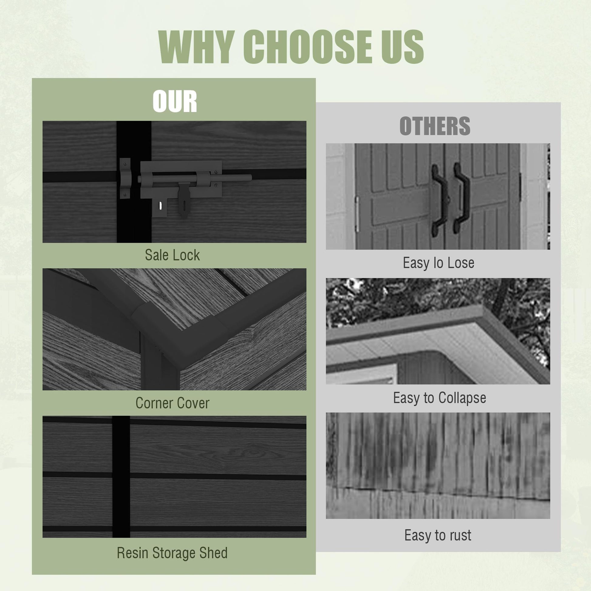 Large Storage Shed: provides ample storage space for various items. Ideal for storing a range of items such as snow blowers, lawnmowers, outdoor chairs, bikes, motorcycle,grills, generators, and more. Compared to resin tool sheds, metal tool sheds provide better wind and snow resistance and are more durable