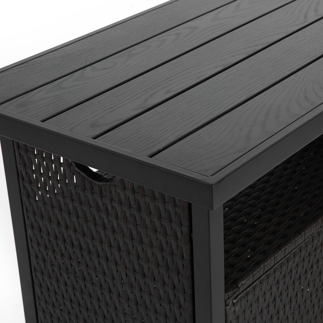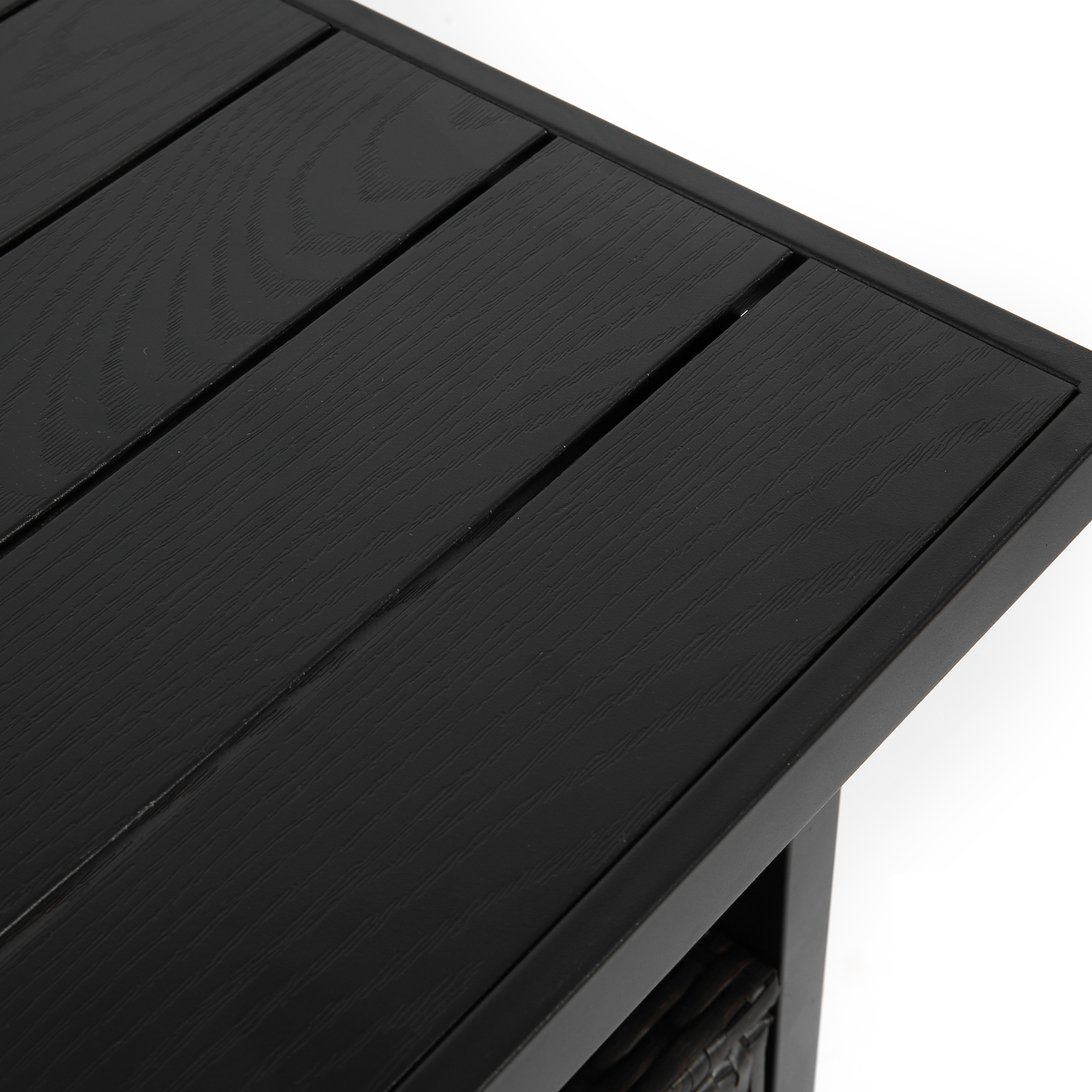 The durability of wicker meets the low-maintenance appeal of plastic wood tabletop, creating a stylish and resilient hub for al fresco culinary delights. Embrace elegance and endurance in every outdoor gathering