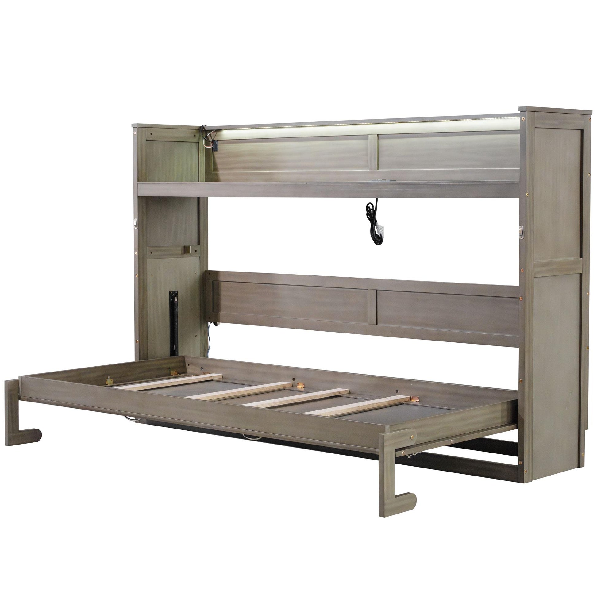 Twin XL Size Murphy Bed with Desk,LED Light and USB Charging Station,Gray Wash